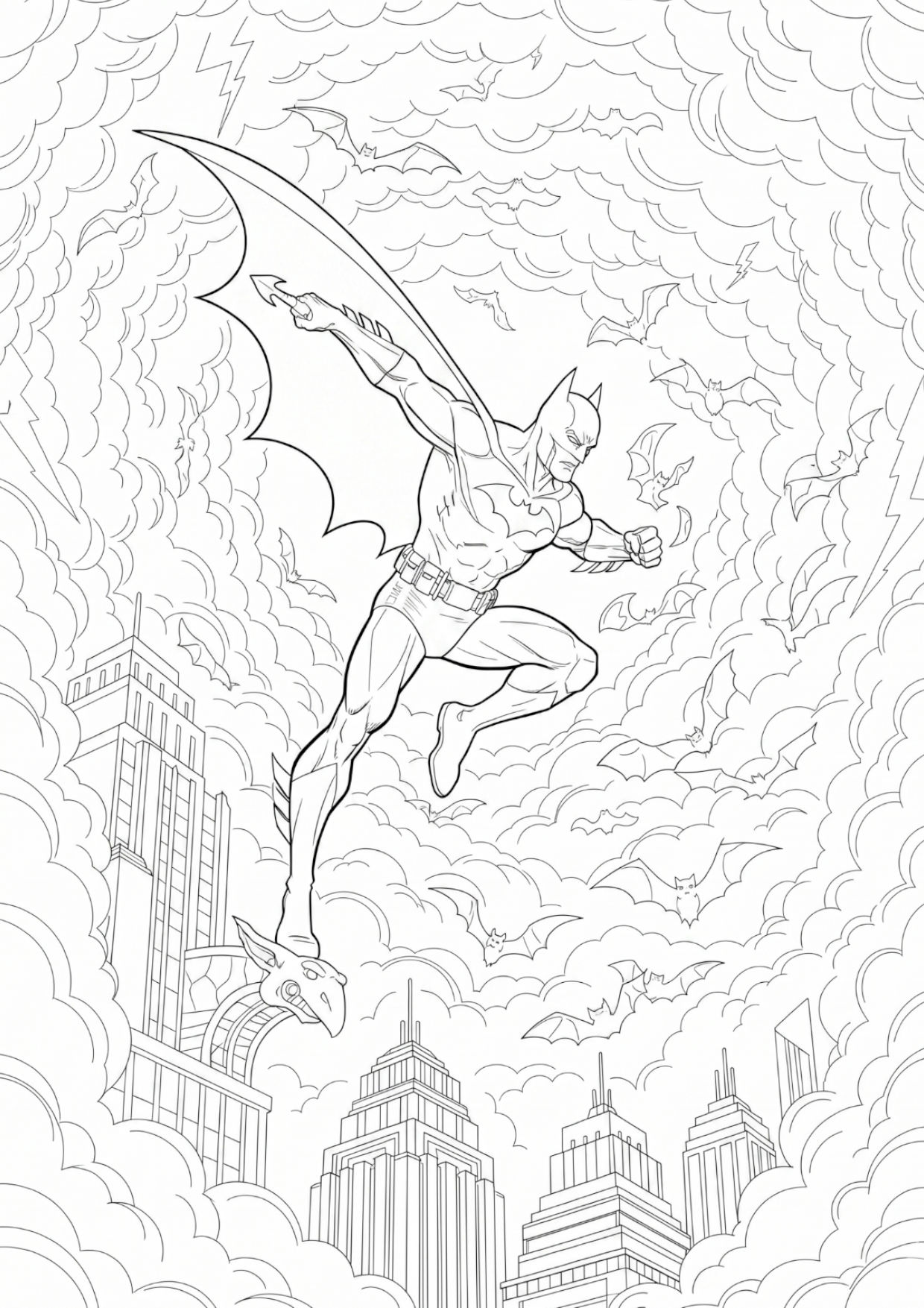 Kolorowanki Batman dla dorosłych – kolorowanka z Batmanem w lataniu Data publikacji: 26 kwietnia 2026 Kolorowanki Batman dla dorosłych to wyzwanie dla fanów superbohaterów! Weź batarang i zatańcz z Batmanem nad Gotham. 🖨️ Wydrukuj 📄 PDF