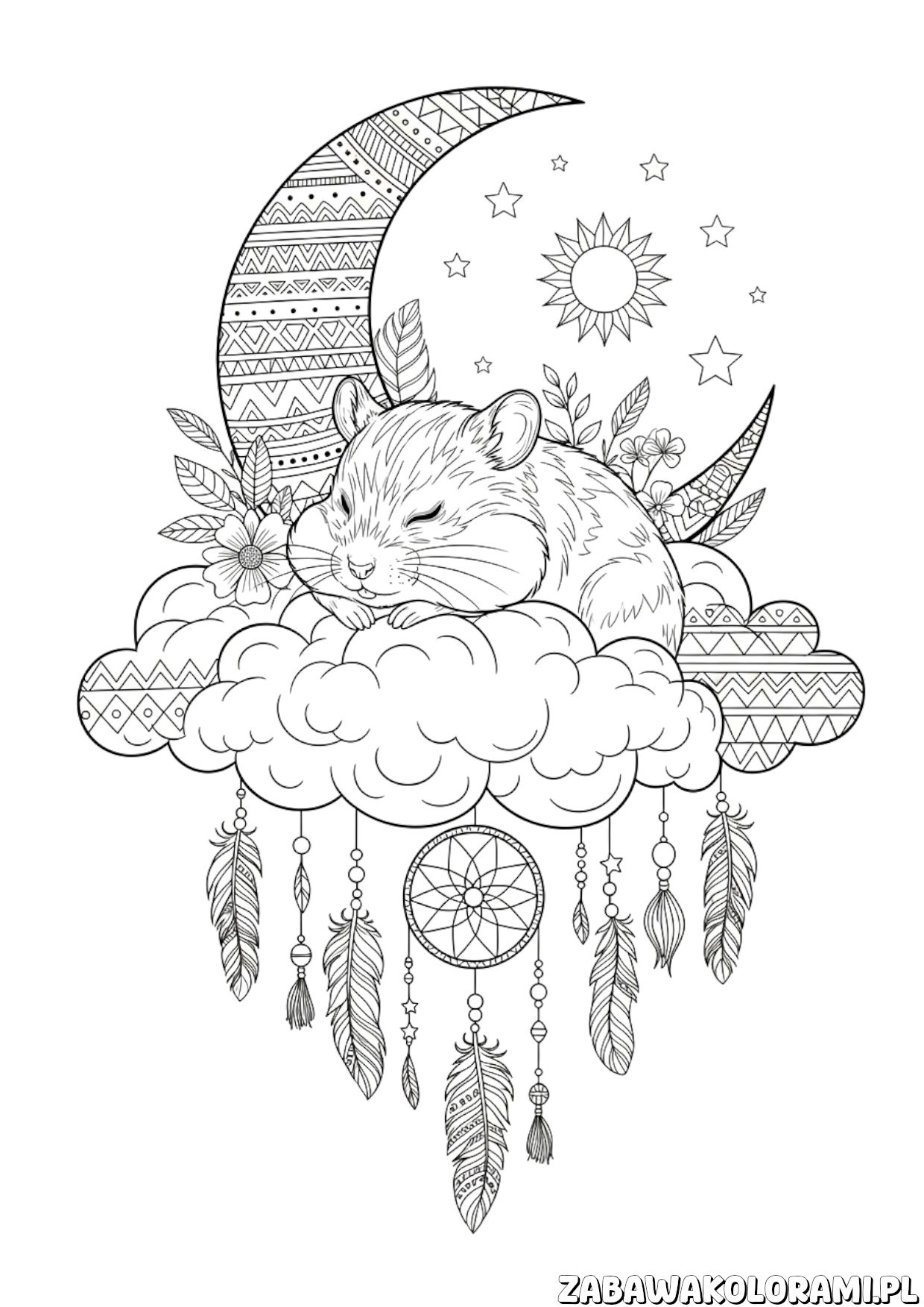 Chomik Kolorowanka antystresowa: Pomaluj chomika na chmurce i odkryj magię snów! Idealna zabawa dla kreatywnych maluchów.