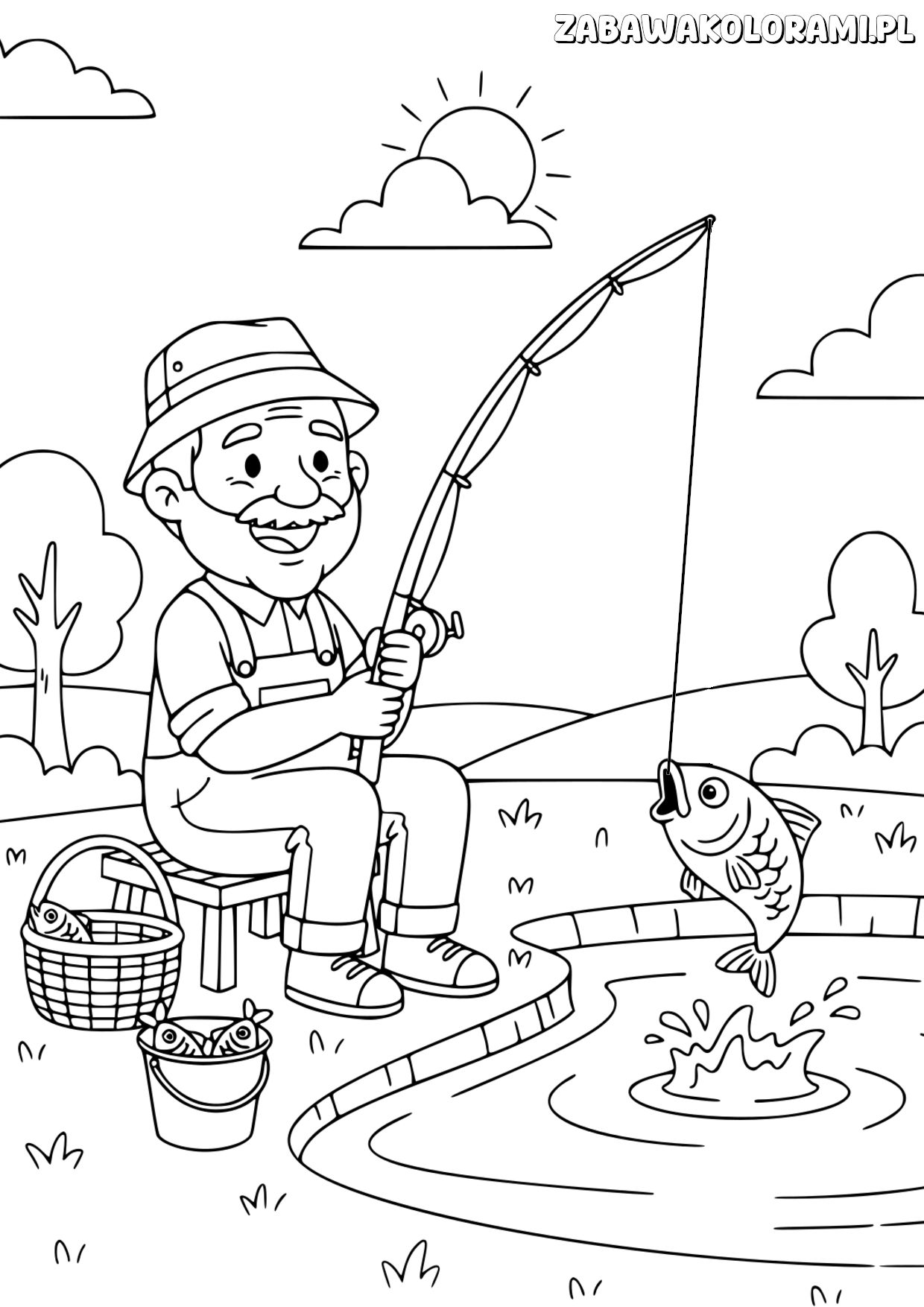Dziadek rybak kolorowanka – zabawa z wnukami Data publikacji: 15 listopada 2025 Dziadek rybak kolorowanka: Pomaluj dziadka przy jeziorze i jego nowych rybich przyjaciół. Gotowy, gotowa, kolorujmy! 🖨️ Wydrukuj 📄 PDF