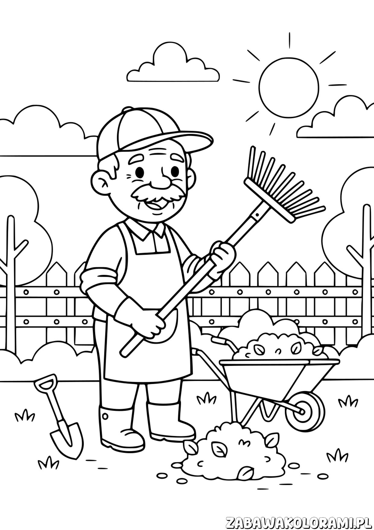 Dzień Dziadka Kolorowanka: Wypraw się z dziadkiem do ogrodu i pomóż mu porządkować liście! Kreatywna zabawa gwarantowana.