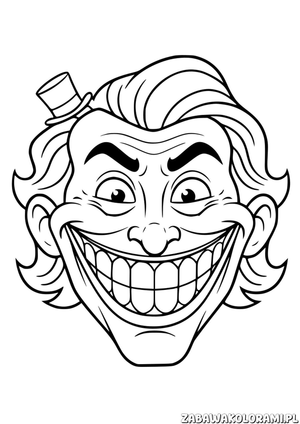 Twarz jokera kolorowanka z uśmiechem i cyrylnym kapeluszem Data publikacji: 17 lutego 2026 Twarz jokera kolorowanka to darmowa zabawa dla dzieci. Pobudź wyobraźnię kolorując uśmiechniętą postać z cyrylnym kapeluszem! 🖨️ Wydrukuj 📄 PDF