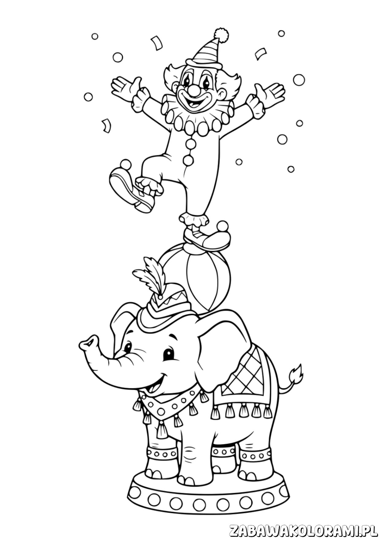 Kolorowanki klaun – zabawne postacie z słoniem i klaunem do kolorowania