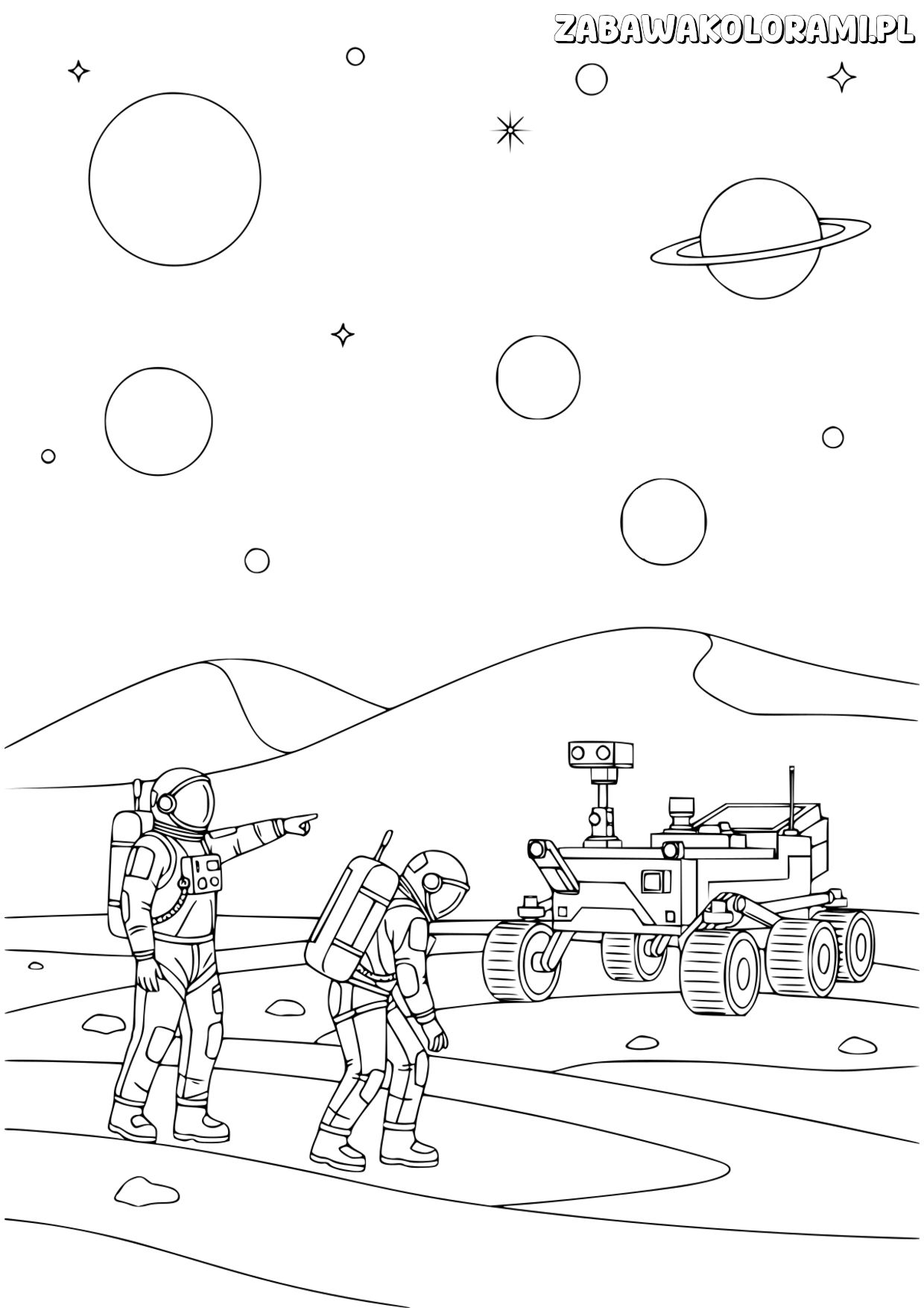 Strona główna » Kolorowanki kosmos » Kosmonauci na Marsie – kolorowanka