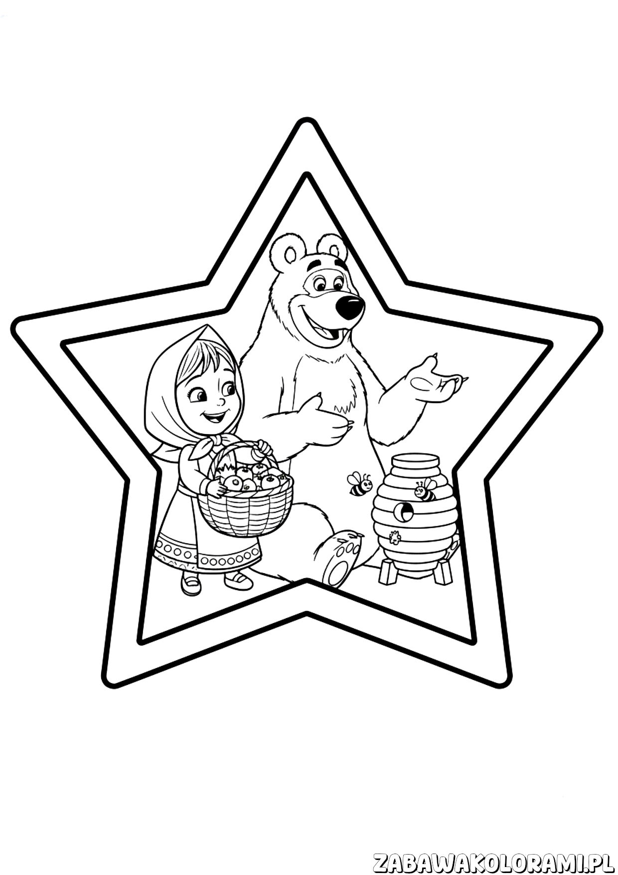 Malowanka do druku Masza i niedzwiedz z kolorowanką o pszczołach