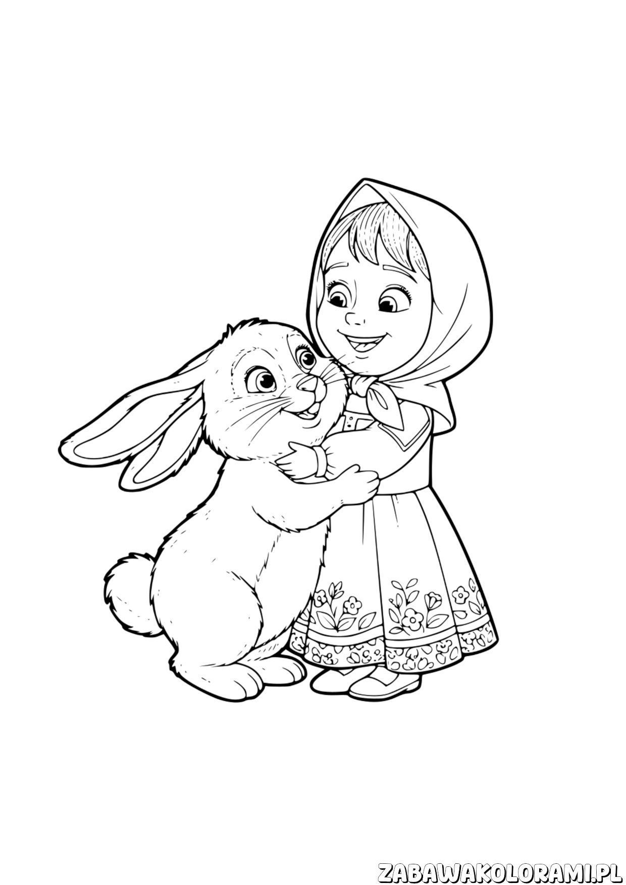 Masza Kolorowanka dziewczynka z królikiem Data publikacji: 22 kwietnia 2026 Masza Kolorowanka to kolorowanka z uroczą dziewczynką w stroju ludowym i przyjacielskim królikiem. Idealna dla dzieci, które uwielbiają kolorować! 🖨️ Wydrukuj 📄 PDF