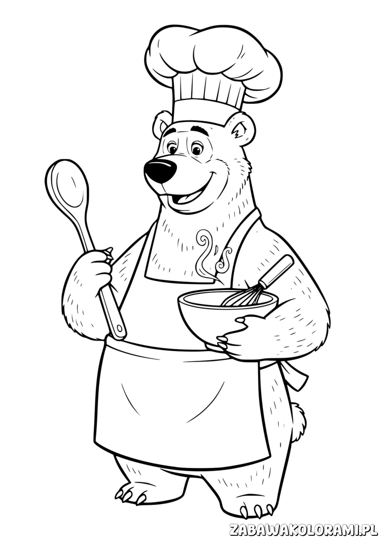 Niedziewiedz Kolorowanka z małym misiem kucharzem Data publikacji: 22 kwietnia 2026 Niedziewiedz Kolorowanka to idealna propozycja dla małych miłośników kucharstwa! Poznaj uśmiechniętego misia w czapce kuchennej i fartuchu. 🖨️ Wydrukuj 📄 PDF