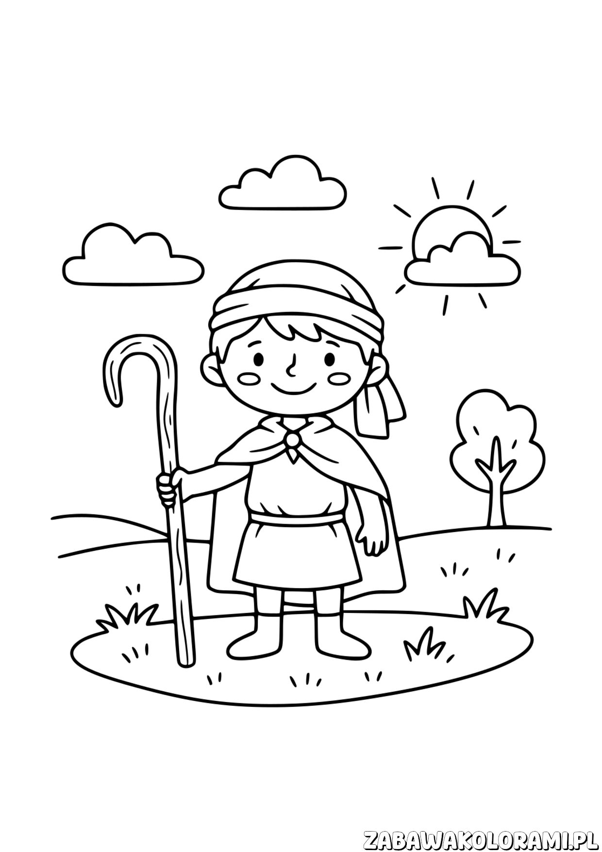 Kolorowanka Mały Pasterz – zabawa z pasterzem Data publikacji: 16 listopada 2025 Kolorowanka Mały Pasterz: Wyrusz z pasterzem na zielone łąki! Pomaluj jego tunikę i laski, a niebo udekoruj słońcem i chmurkami. 🖨️ Wydrukuj 📄 PDF