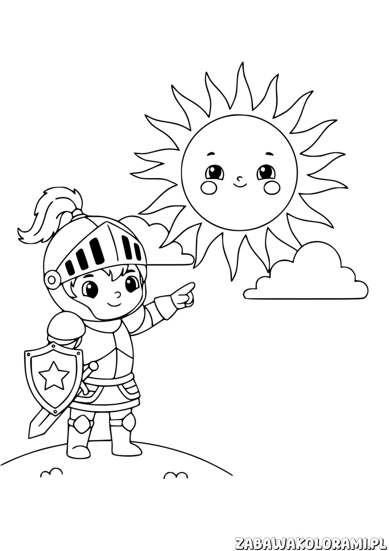 Darmowa Kolorowanka Rycerz z uśmiechniętym słońcem dla dzieci Data publikacji: 13 marca 2026 Darmowa Kolorowanka Rycerz to fantastyczna kolorowanka, w której rycerz wskazuje uśmiechnięte słońce. Pobudź wyobraźnię swojego dziecka! 🖨️ Wydrukuj 📄 PDF