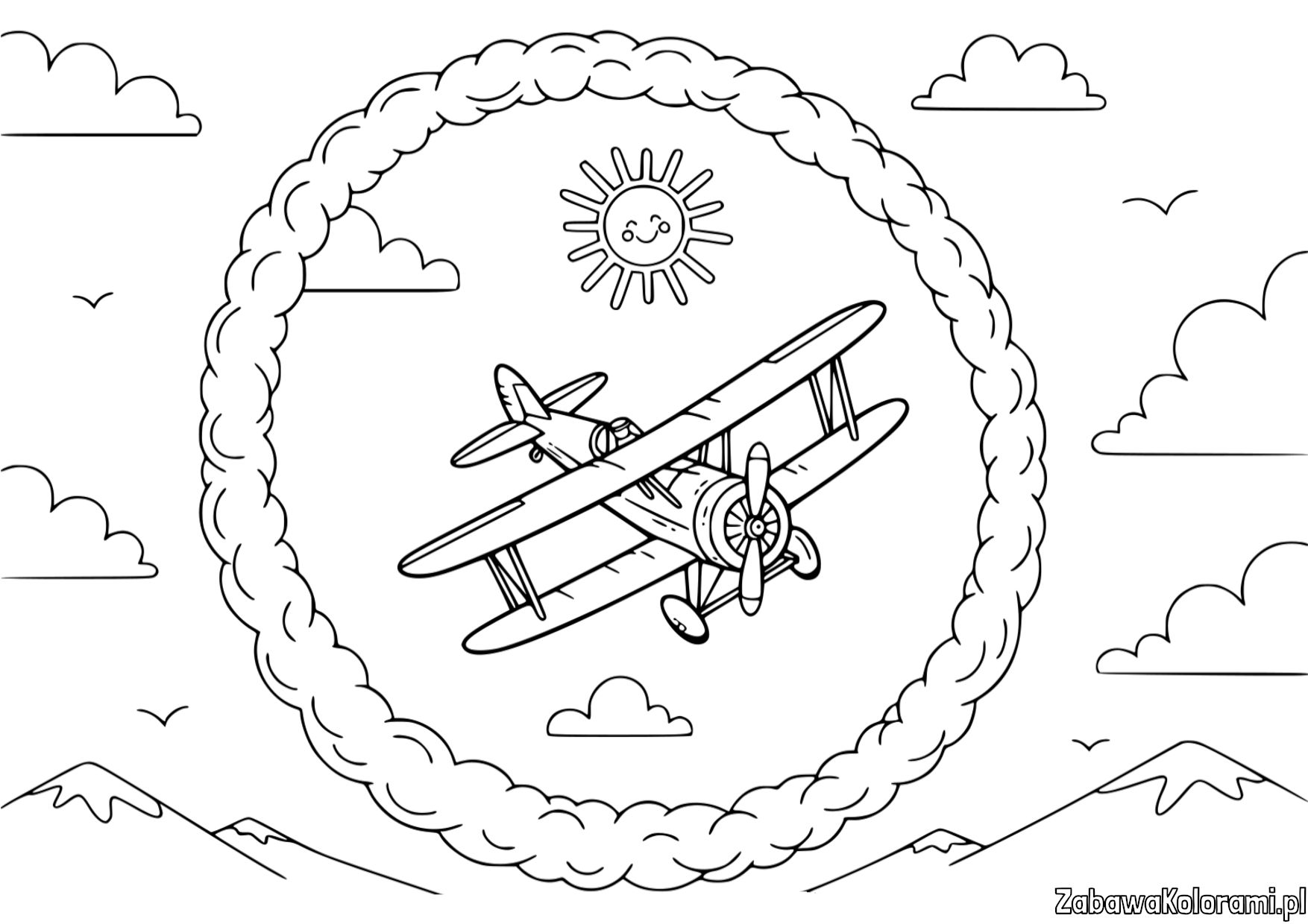 Strona główna » Kolorowanki Samoloty » Samolot Kolorowanka – zabawna kolorowanka z samolotem i słońcem