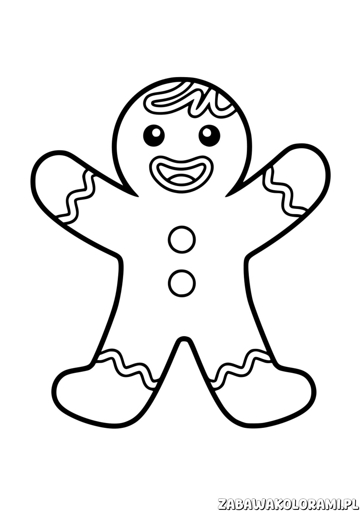 Ciasteczko świąteczne kolorowanka: zabawa z bożonarodzeniowym ciasteczkiem! Pobudź wyobraźnię i pokoloruj uśmiechniętego bohatera świąt.