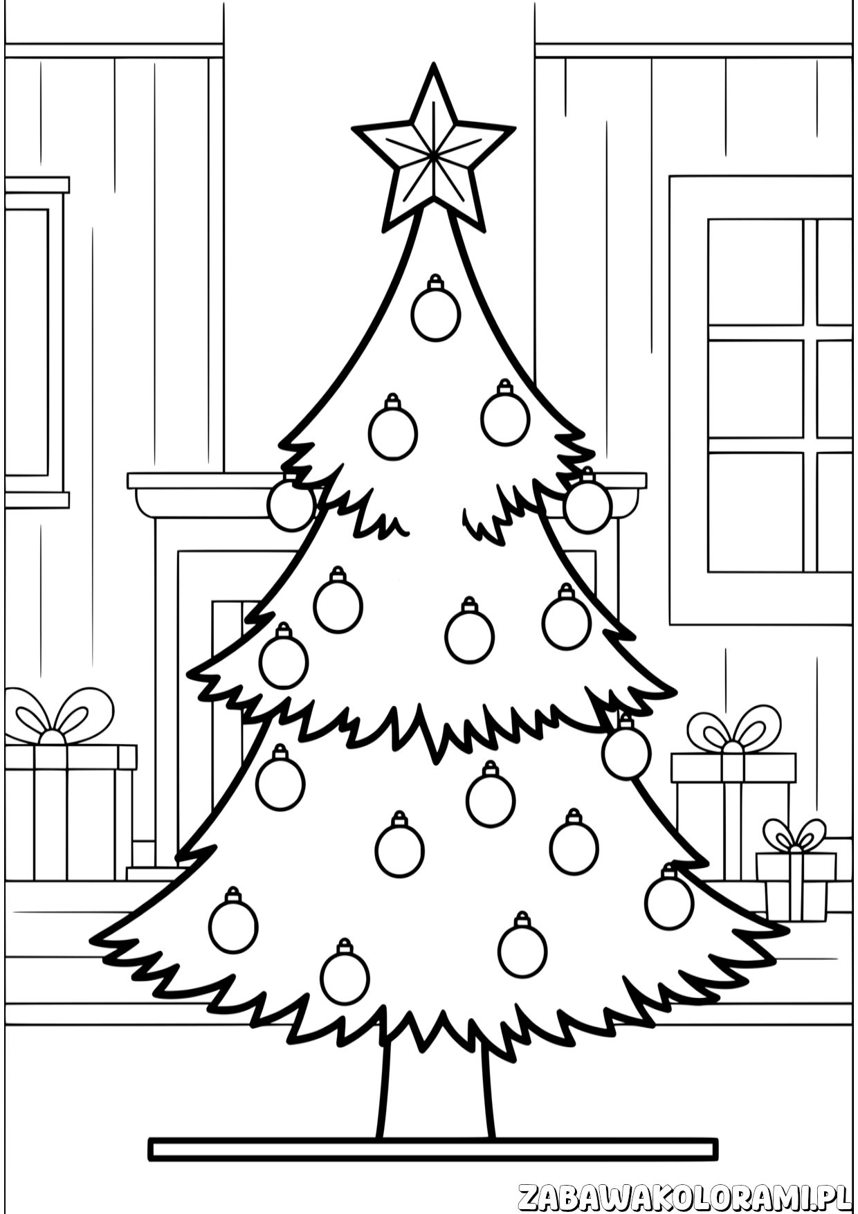 Kolorowanka choinka - koloruj choinkę i prezenty