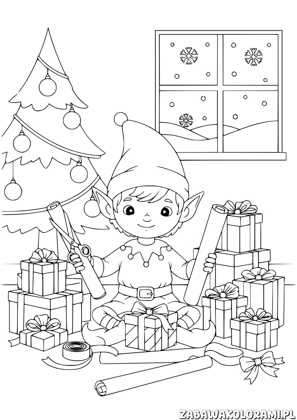 Kolorowanka elf pakuje prezenty – zabawa dla dzieci Data publikacji: 1 listopada 2025 Kolorowanka elf pakuje prezenty: pomóż elfowi udekorować prezenty i drzewko! Darmowa zabawa dla dzieci. 🖨️ Wydrukuj 📄 PDF