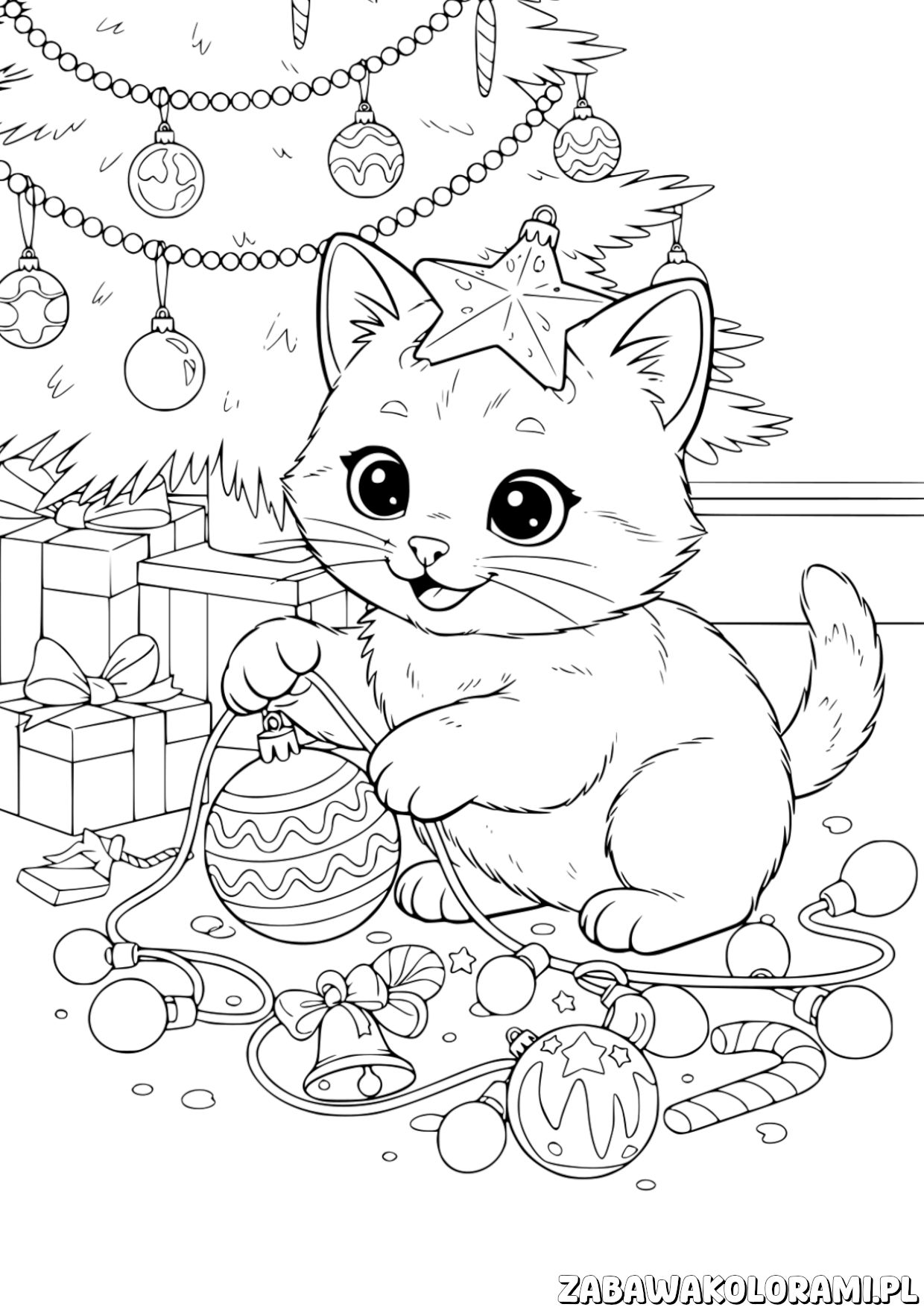 Kot z ozdobami świątecznymi Kolorowanka – koloruj z radością Data publikacji: 1 listopada 2025 Kot z ozdobami świątecznymi Kolorowanka: zabawne kolorowanki świąteczne z kotem i ozdobami. Pobudź wyobraźnię i koloruj z radością! 🖨️ Wydrukuj 📄 PDF