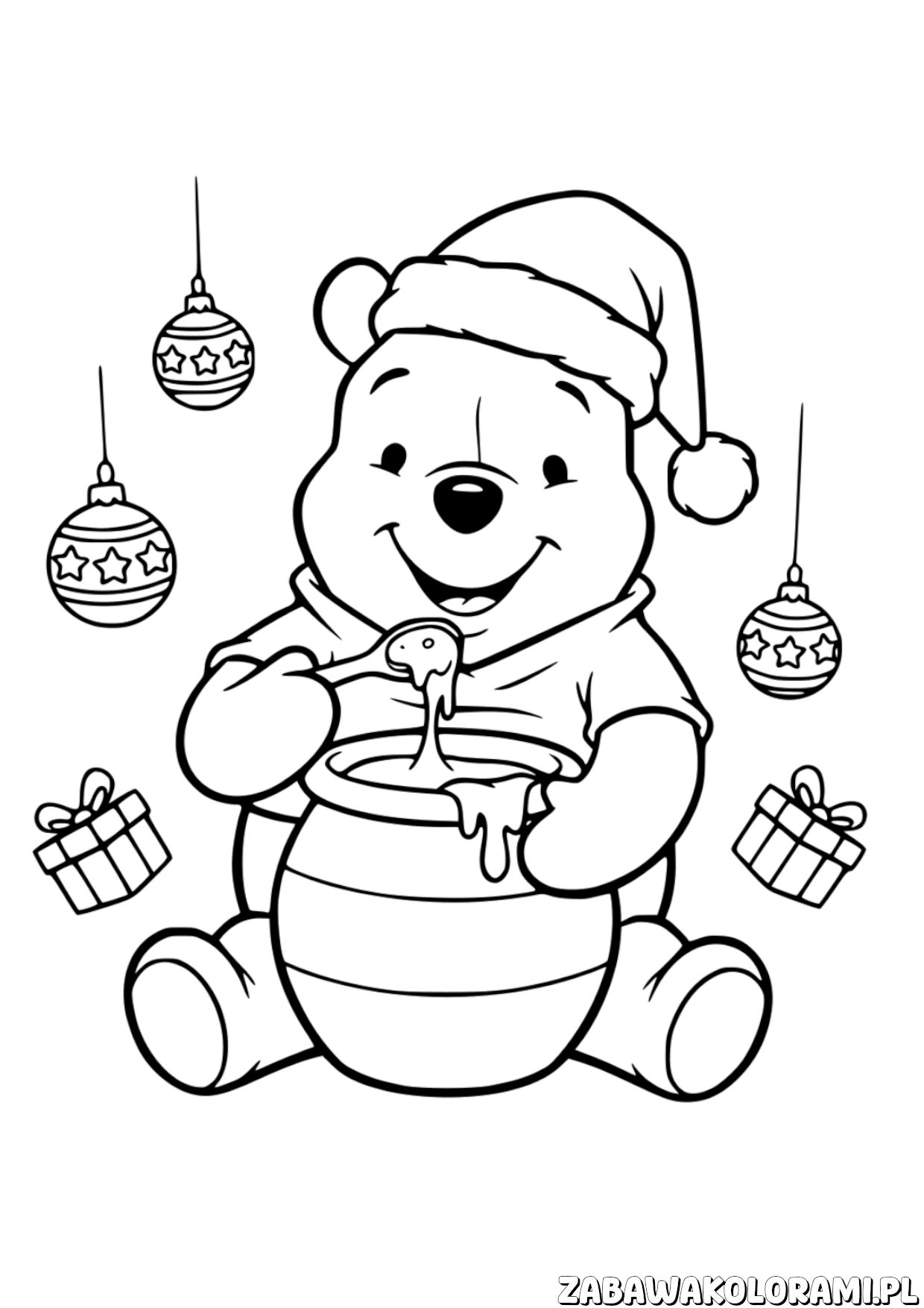 Strona główna » Kolorowanki świąteczne » Świąteczka Kolorowanka Kubuś Puchatek – Święta z miodzikiem