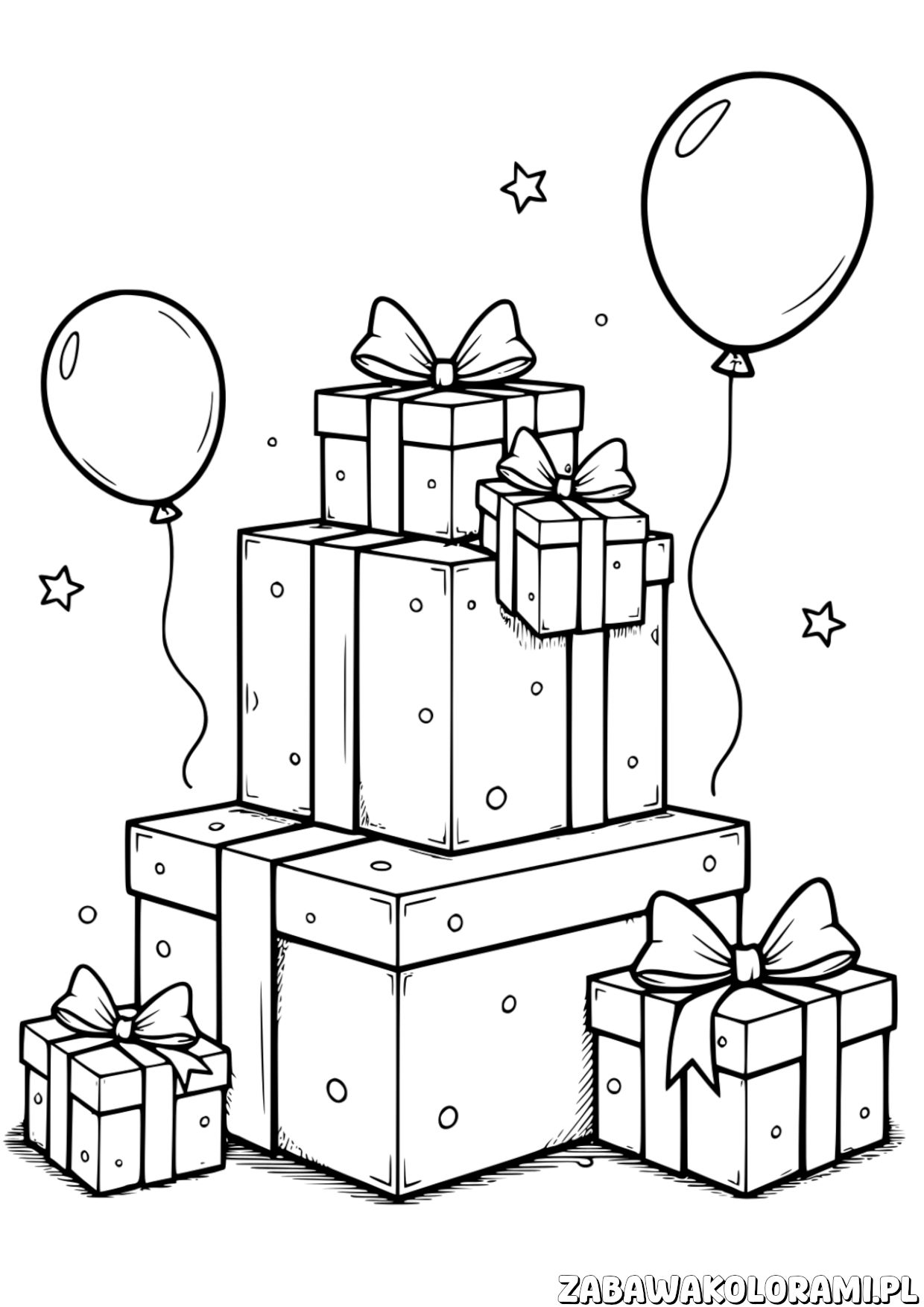 Prezenty Kolorowanka – koloruj prezent dla urodzin Data publikacji: 26 października 2025 Prezenty Kolorowanka: pomaluj piękne prezenty i balony na urodziny! Darmowa kolorowanka dla dzieci. 🖨️ Wydrukuj 📄 PDF Zobacz podobne kolorowanki: Kolorowanki Urodzinowe Zobacz wszystkie >>>>
