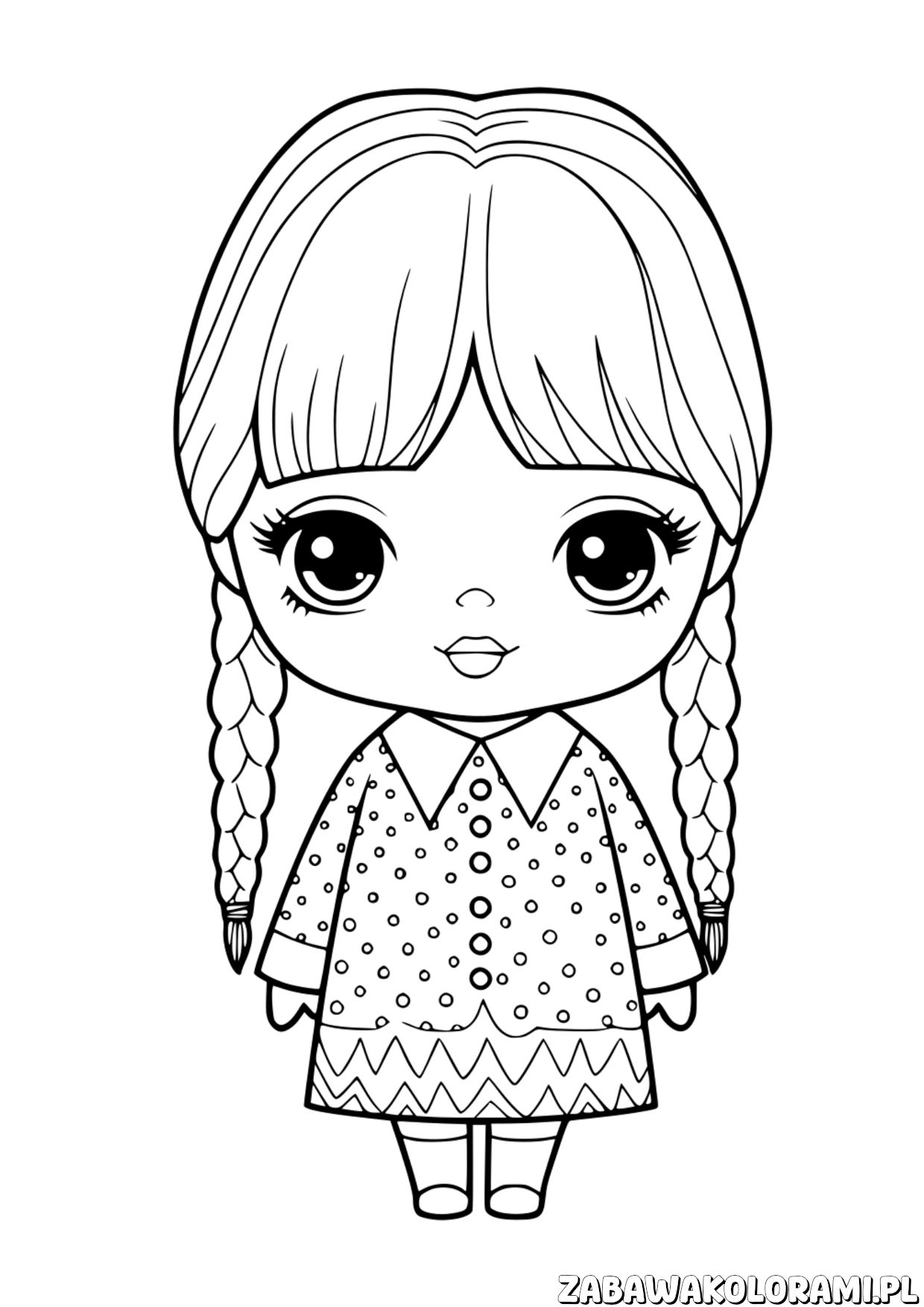 Wednesday Kolorowanka dla dzieci – zabawa z uśmiechniętą bohaterką Data publikacji: 28 stycznia 2026 Wednesday Kolorowanka dla dzieci – zabawa z uśmiechniętą bohaterką. Pomaluj urocze włosy w warkoczyki i kropkowaną sukienkę! 🖨️ Wydrukuj 📄 PDF