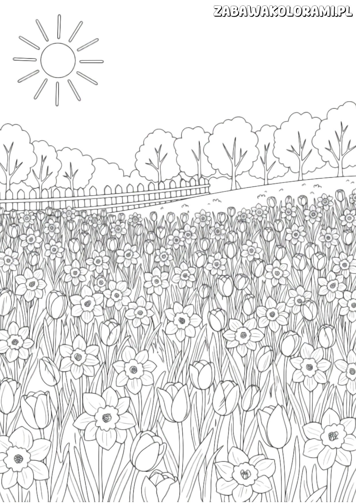 Wiosna kolorowanka dla dzieci z kwiatami i drzewami Data publikacji: 22 lutego 2026 Wiosna kolorowanka do druku to idealne zajęcie dla dzieci, które uwielbiają kolorować. Przedstawia piękną scenę wiosenną z kwiatami i drzewami. 🖨️ Wydrukuj 📄 PDF