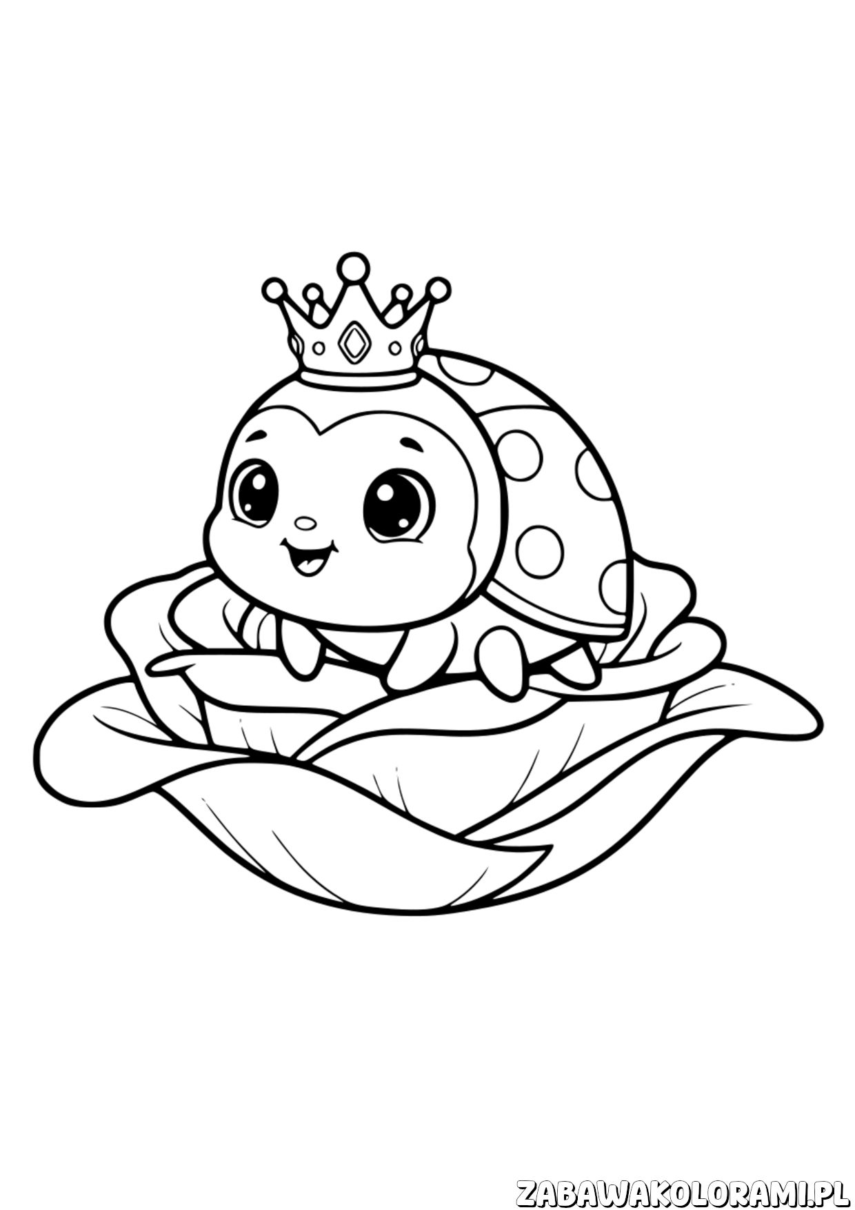 Biedronka kolorowanka - biedronka na liściu, gotowa do pomalowania