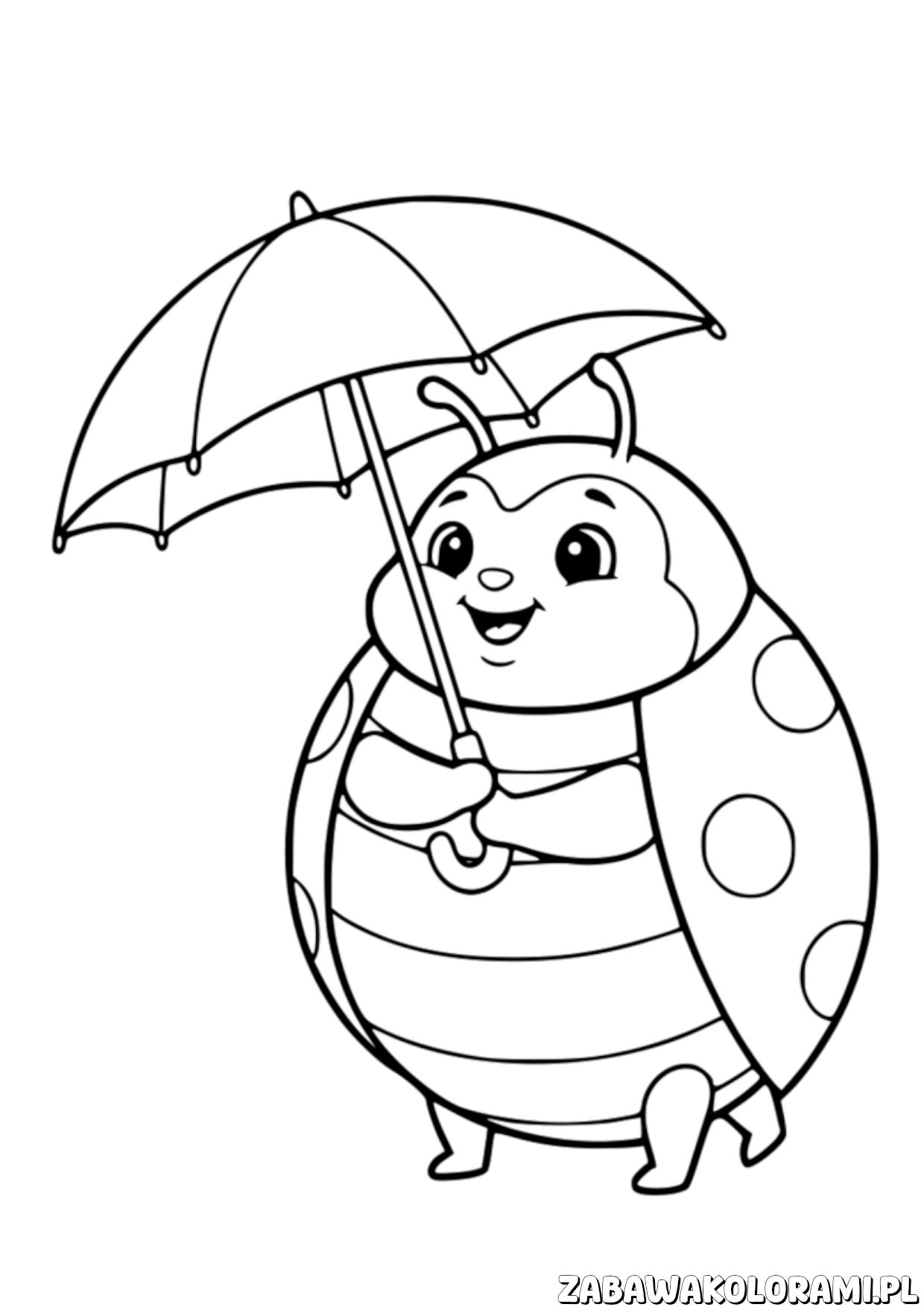 Biedronka z parasolem – kolorowanka dla dzieci Data publikacji: 9 stycznia 2026 Biedronka z parasolem – kolorowanka dla dzieci. Pomaluj biedronkę i jej parasol, gdy pada deszcz! Kreatywna zabawa gwarantowana. 🖨️ Wydrukuj 📄 PDF