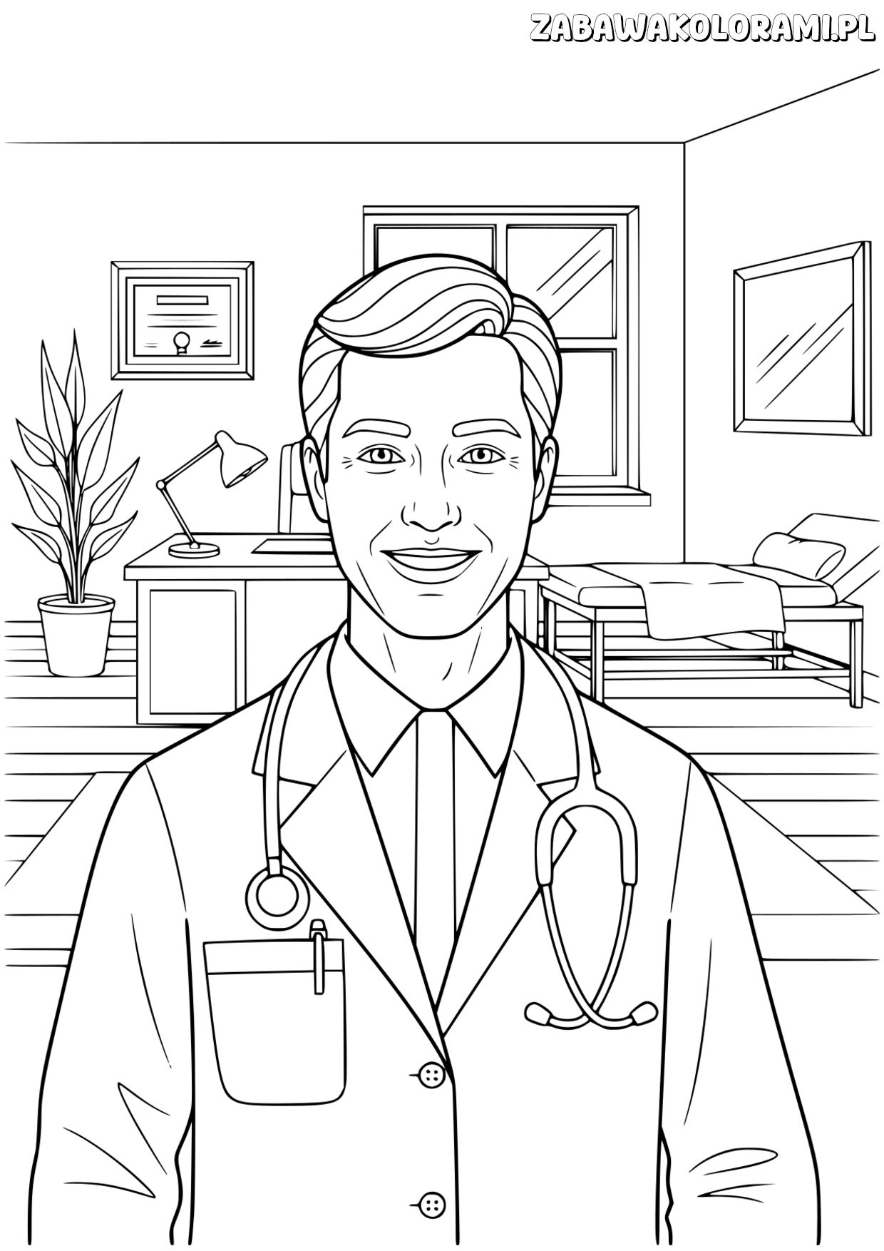 Lekarz Kolorowanka – Koloruj Uśmiechającego się Doktora Data publikacji: 18 października 2025 Lekarz Kolorowanka – Pomaluj uśmiechającego się doktora w jego gabinecie. Kreatywna zabawa dla dzieci! 🖨️ Wydrukuj 📄 PDF