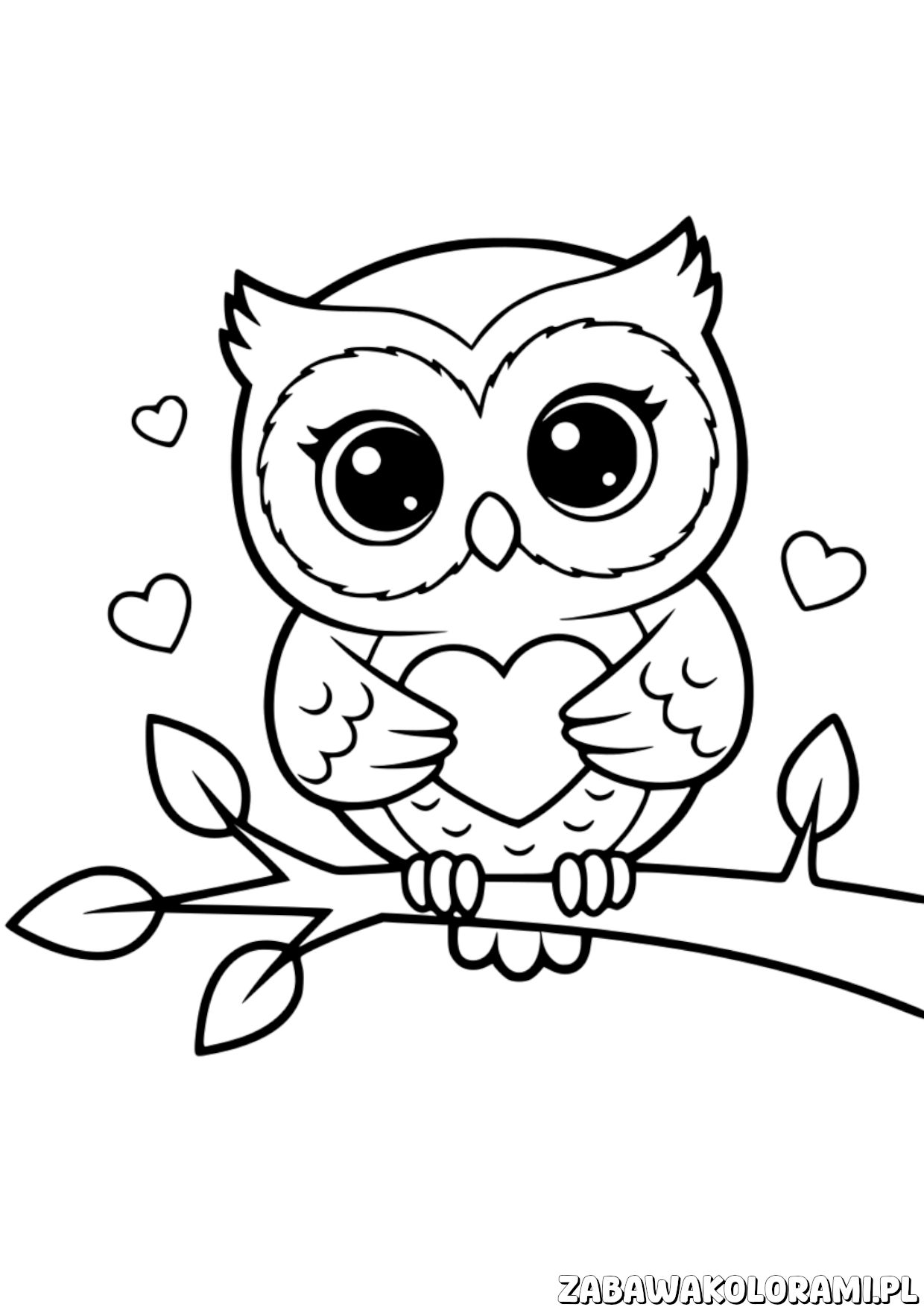 Kolorowanka Walentynka – Sowa z sercem: zabawne kolorowanie dla dzieci z miłą sówką i serduszkiem. Wyobraźnia gotowa!