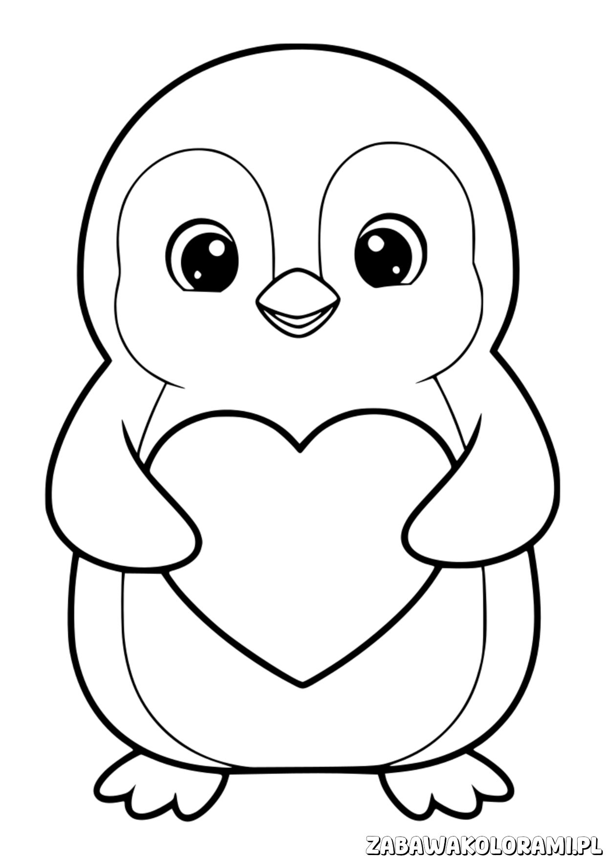 Pingwin z sercem – kolorowanka Walentynki, uroczy pingwin z sercem